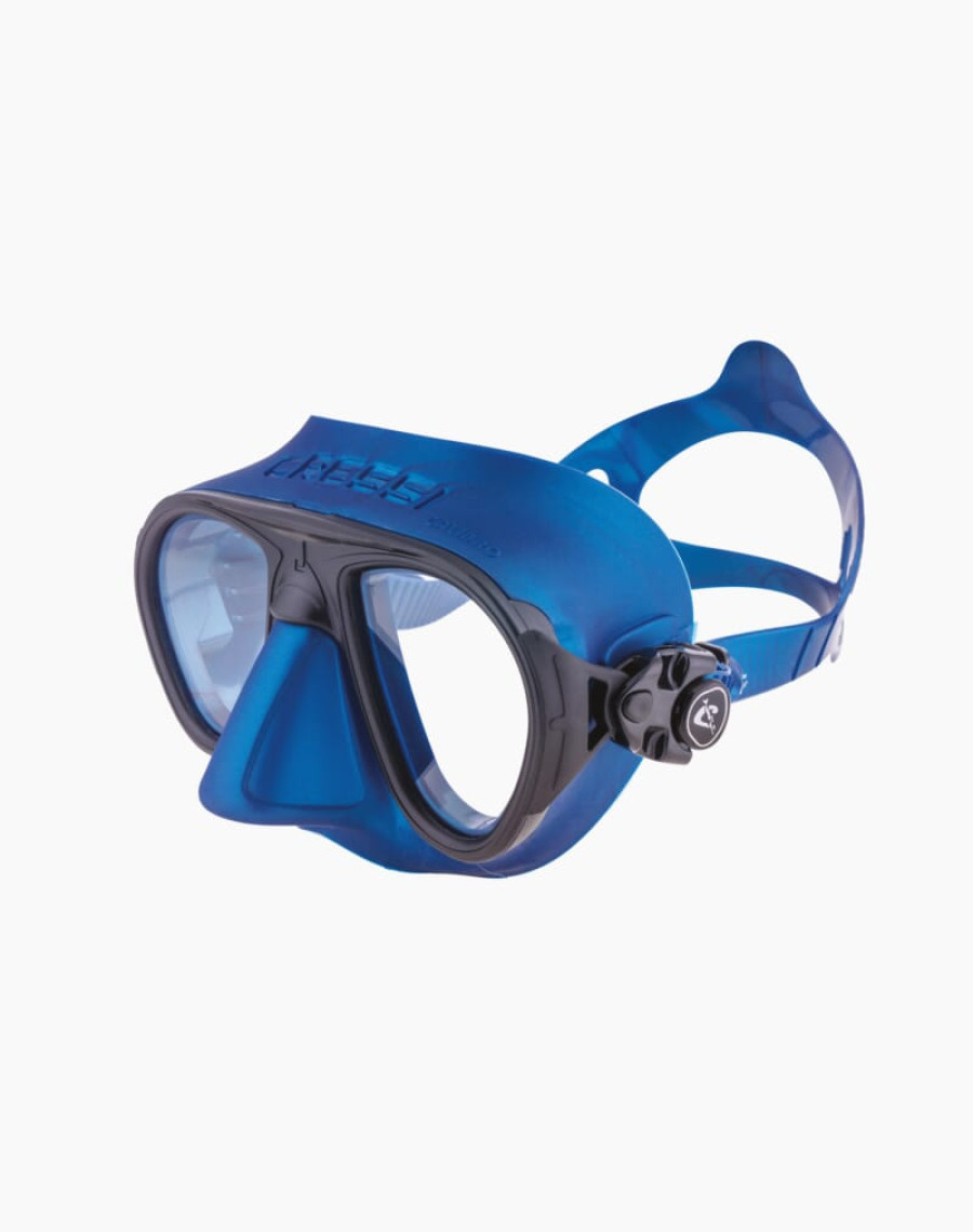 Like its predecessors, the all-new Calibro model from Cressi features Cressi's innovative integrated double-frame system, providing a particularly wide field of vision. The structure of the mask gives it a compact appearance and hydrodynamics that allow it to be held very close to the face while benefiting from wider lenses. Thanks to the oblique arrangement of the lenses, Calibro is the only Cressi mask to combine minimal internal volume with a particularly wide field of vision. As always, the buckles are connected directly to the rigid frame via a rubber seal. This allows the strap to be adjusted and the mouthpiece to be positioned without altering the frame's position on the face. The matte finish unifies the aesthetics of all the elements, ensuring optimal integration of the diver into the underwater environment and avoiding reflections that are extremely disturbing for marine organisms. Designed to give divers a real sense of freedom, Calibro is the ideal mask for freediving. Viewing available at your nearest optician!