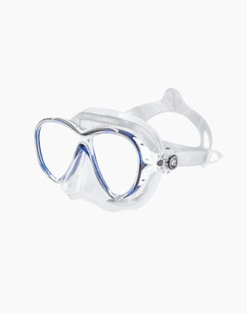 Cressi Eyes Evolution introduces a number of new ideas for divers including inverted teardrop lenses and swept frame and skirt. These two design features help massively improve the overall field of vision by up to 30%. The soft, full silicone skirt incorporates a second lip inside the skirt which increases the sealing surface that comes into contact with the skin, helping to prevent water from penetrating the mask. A tiliting quick-adjust strap buckle is mounted on both sides of the mask to facilitate strap adjustment and position fitting to suit the user. This diving mask can be custom-fitted at your nearest optician's. Find out more on the store locator.